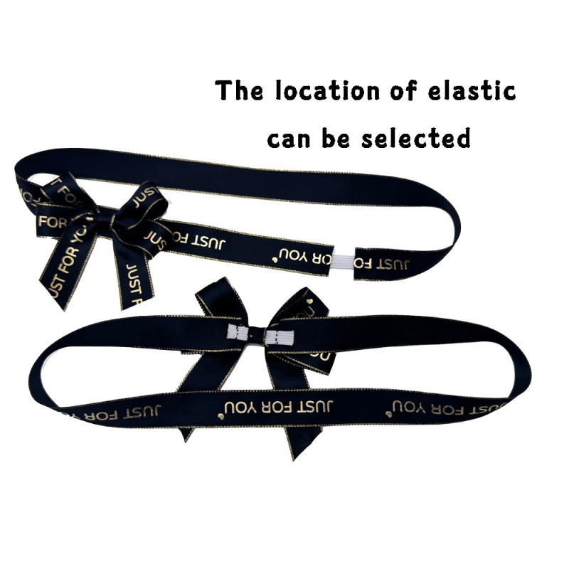 Paired with geometric-patterned gift boxes, these bows feature navy satin ribbon + gilded "JUST FOR YOU" lettering — trimmed with fine gold edges for a luxe touch. The standout adjustable elastic design lets you choose the elastic clip’s position, fitting boxes of all sizes while infusing packaging with a "custom-made" warmth.